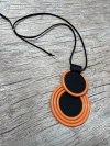 Colar com um fio de courinho e uma linda composição com duas argolas em resina e borracha.